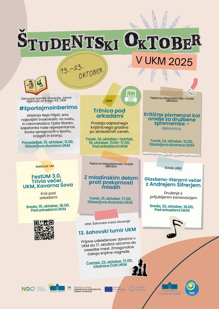 Program Študentskega oktobra 2025 v Univerzitetni knjižnici Maribor