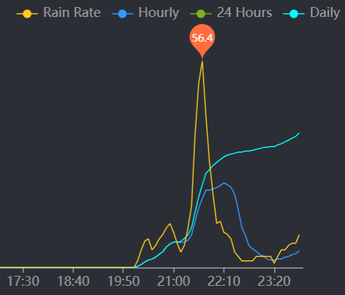 Močnejši od tega so bili le 17. junija z 99,0 milimetra na uro, 26. junija s 77,4 milimetra na uro, 29. avgusta s 73,2 milimetra na uro in 8. julija z 62,4 milimetra na uro.