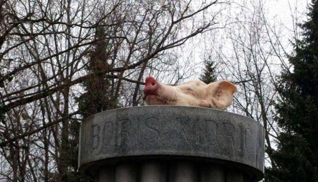 V noči na torek so še vedno neznani storilci v Kiričevem poskrbeli za nenavaden incident. Na prazen podstavek, kjer je nekoč stal doprsni kip Borisa Kidriča, so postavili svinjsko glavo. Odrezano svinjsko glavo so v središču Kidričevega namestili na steber, od koder je ogorčene mimoidoče opazovala še ves torkov dopoldan.