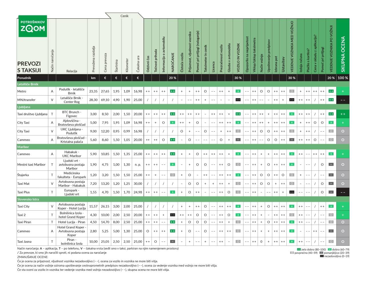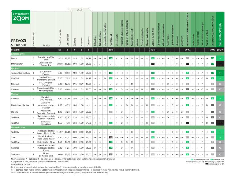 Eno vožnjo so ocenili kot zelo dobro, šest jih je prejelo oceno dobro, sedem se jih je izkazalo za povprečne, dve sta zaradi res slabe izkušnje dobili oceno nezadovoljivo, so navedli v Mednarodnem inštitutu za potrošniške raziskave.