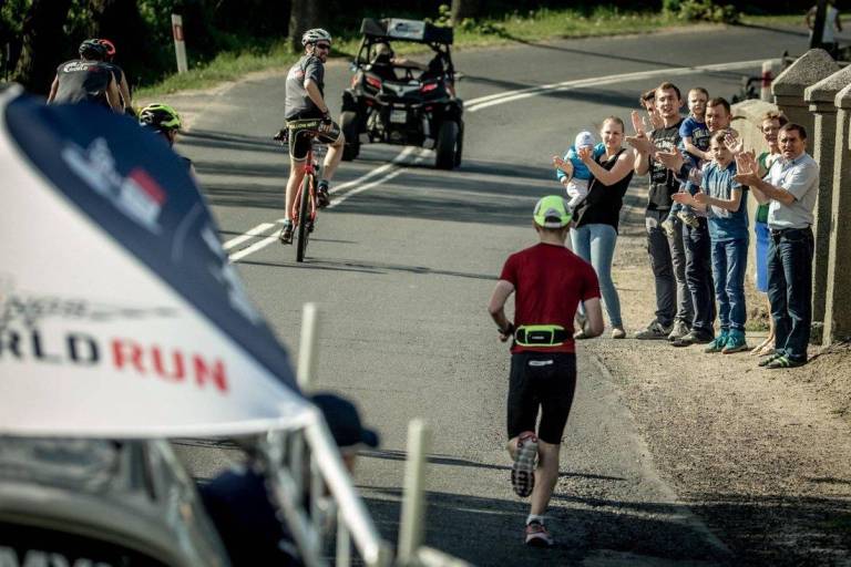 Dogovorite se s prijatelji, prenesite si aplikacijo Wings for Life World Run in skupaj z drugimi ljudmi tecite, dokler vas ne ujame virtualno zasledovalno vozilo. Namesto ciljne črte skušajo tekmovalci čim dlje bežati pred zasledovalnim virtualnim vozilom, ki štarta 30 minut po uradnem pričetku tekmovanja s hitrostjo 15 kilometrov na uro in nato postopoma pospešuje, dokler ne ujame čisto vseh tekmovalcev.