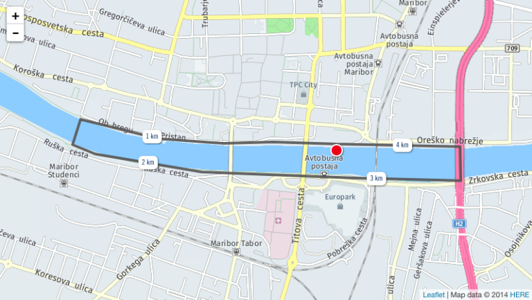 Štartalo se bo izpred kino centra Maribox, vrnili pa se bodo in se potem prek Studenške brvi. Trasa je dolga 4 km. Ta trasa vsebuje tudi predele, ki niso primerni za uporabnike invalidskih vozičkov zato pozivajo, da si tekmovalci ogledajo tudi druge trase, ki so na voljo v okviru aplikacije in ki so blizu njih, ali pa tekmujejo kot individualni udeleženec, kjerkoli želijo.