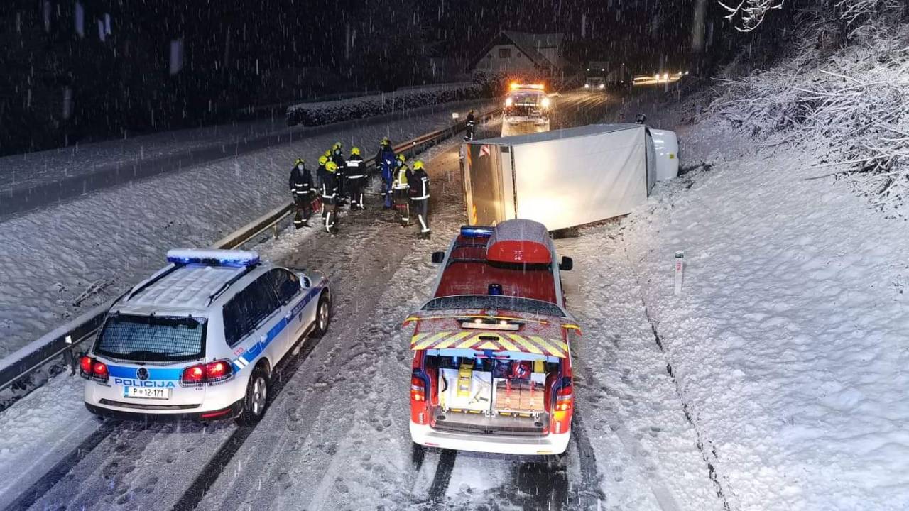 Po poročanju Uprave Republike Slovenije za zaščito in reševanje se je ob 4.43 se je na cesti Radlje ob Dravi - Dravograd v občini Muta prevrnilo kombinirano vozilo.