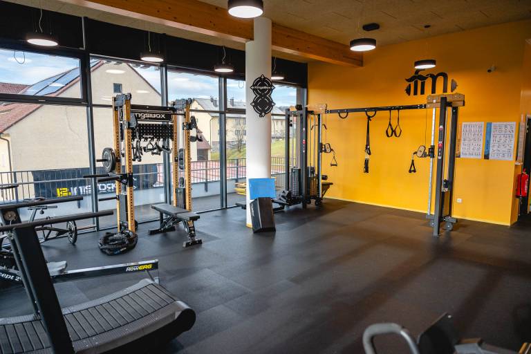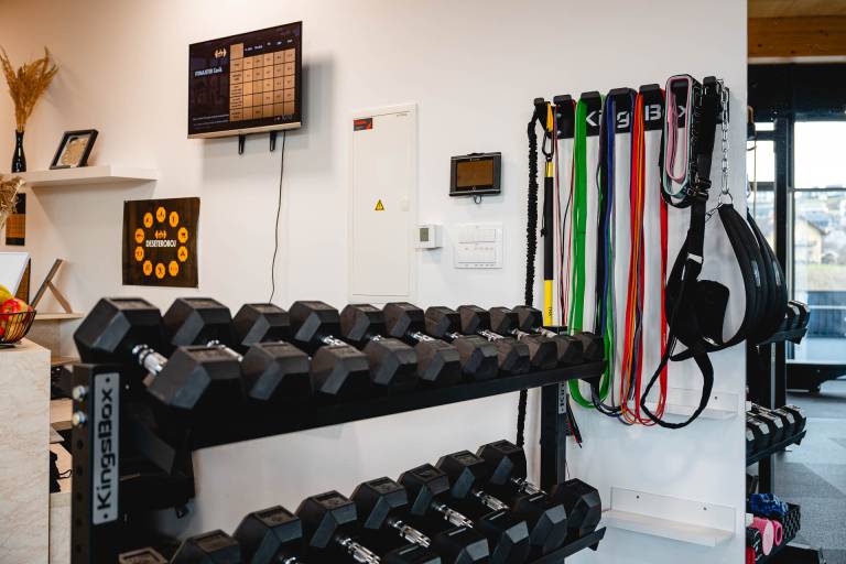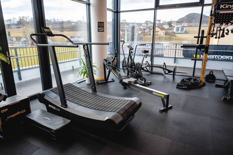 V modernem in svetlem prostoru se na 110 kvadratnih metrih nahajajo številne naprave, ki so plod slovenskega proizvajalca fitnes opreme.