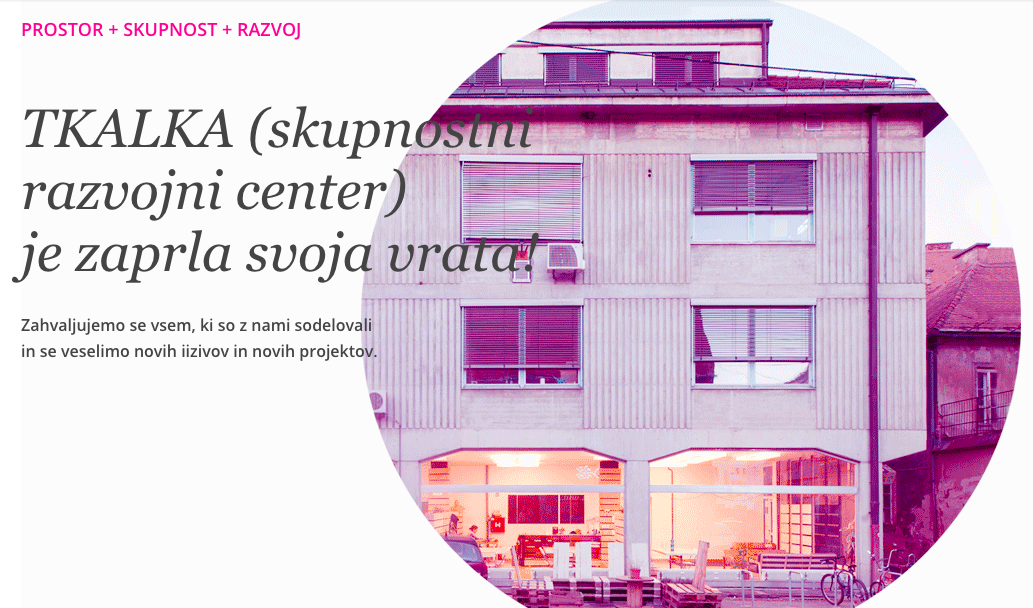Hiša duhov na 2500 kvadratnih metrih delovnih prostorov. Na spletni strani skupnostnega razvojnega centra Tkalka nas zdaj že nekaj časa pozdravlja zapis, da so vrata zaprta.