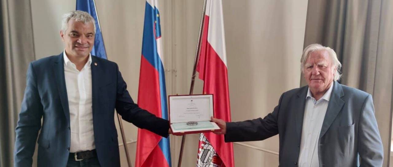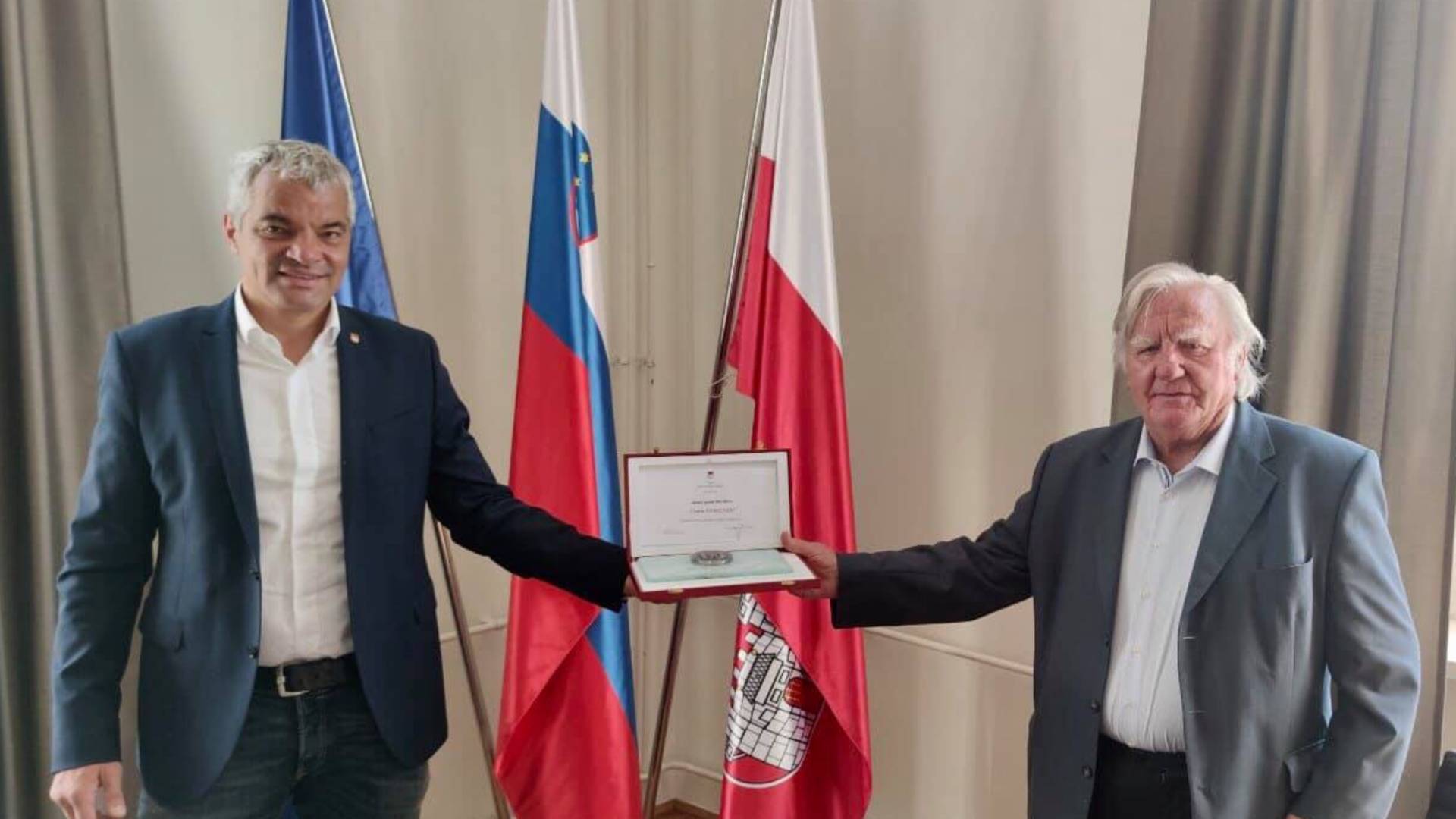 Mariborski župan je Tonetu Partljiču ob njegovem 80. rojstnem dnevu predal mestni pečat.