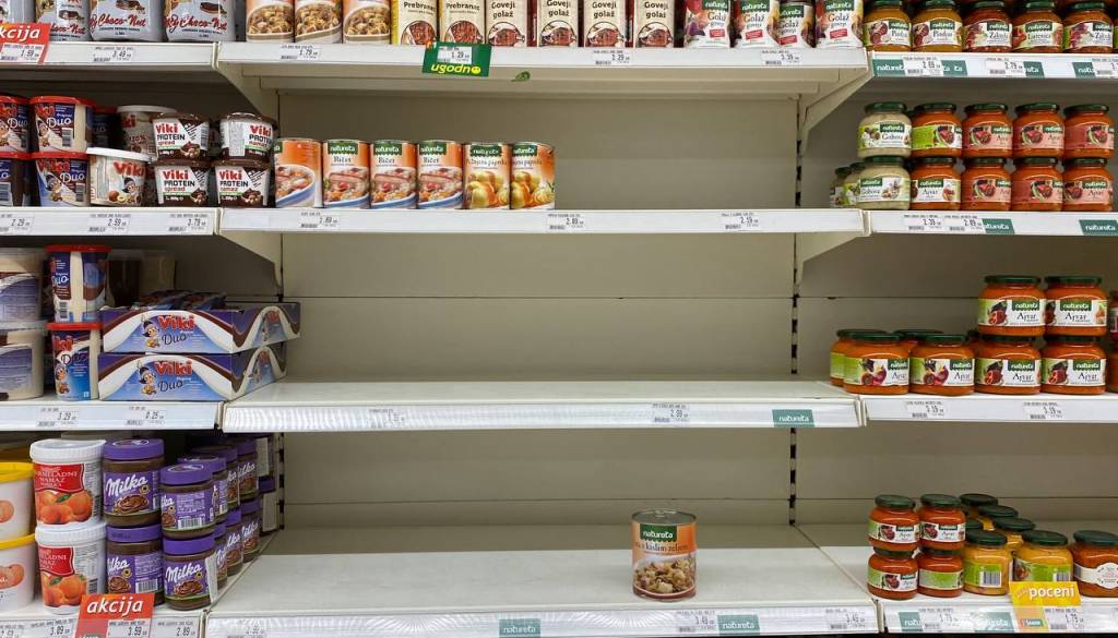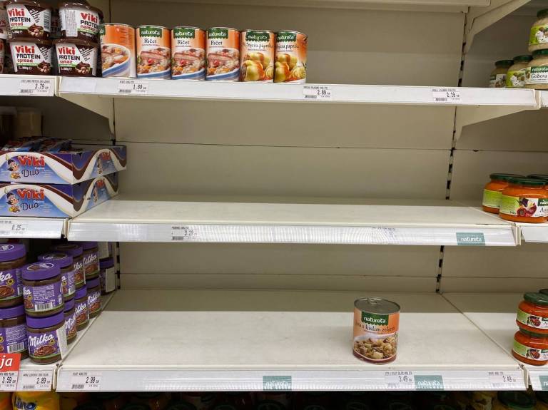 Spomnimo. Prazne police v trgovinah spominjajo na začetek marca 2020, ko so bile zaradi razglasitve epidemije trgovine dodobra izropane.