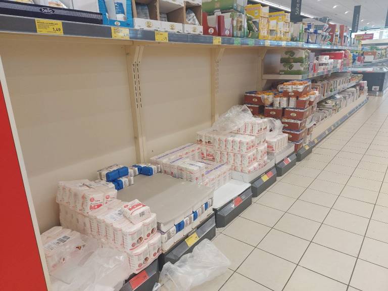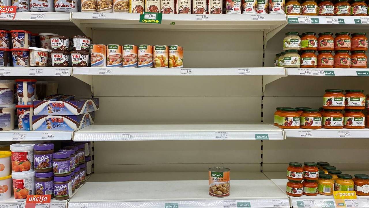 13. marca je po trgovinah zmanjkalo sadja, zelenjave, mesa, olja, kvasa, konzerv in testenin. Prav tako je zmanjkalo mleka in jajc.
