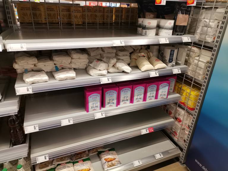 Mnogi se po družbenih omrežjih zgražajo nad paniko ljudi, v zadnjih dneh potrošniki namreč kupujejo večje količine hrane, predvsem moke, soli in sladkorja.