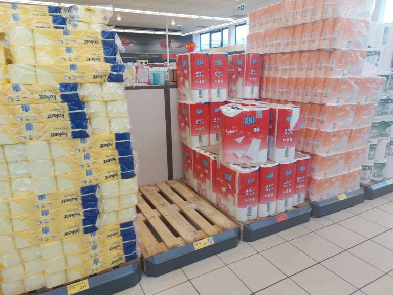 V Lidlu v Murski Soboti je danes skoraj zmanjkalo toaletnega papirja.