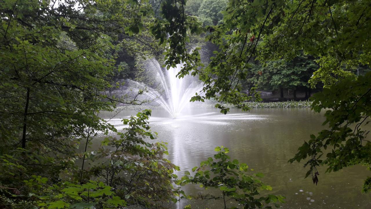 Kot je zapisala, izgleda, kot da je vodomet v prvem ribniku nagnjen v eno smer, tako da vode ne prši enakomerno.