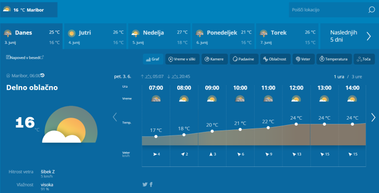 Jutri bo pretežno jasno. Verjetnost za nastanek kakšne vročinske nevihte bo majhna.