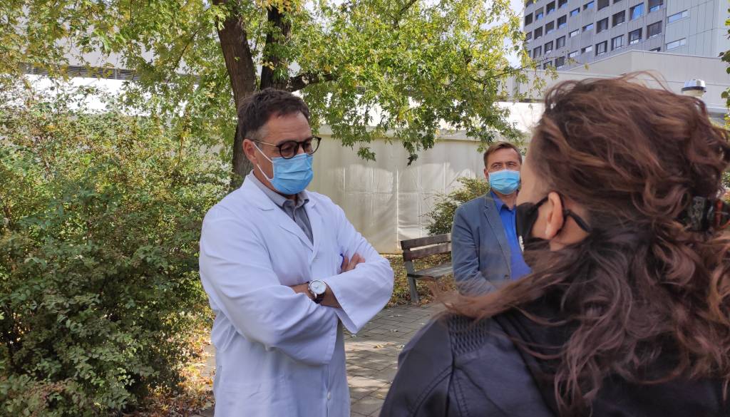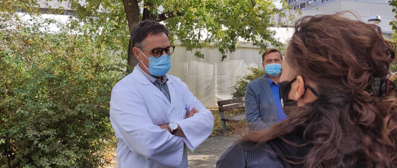 - tudi pacienti so sedaj opremljeni z maskami, omejeno je gibanje pacientov med posameznimi sobami in izven bolnišnice, obiski so še vedno prepovedani.