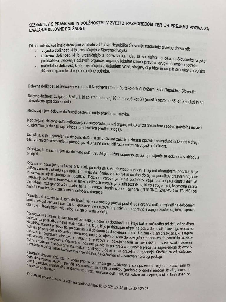 »Poudarjamo, gre zgolj za seznanitev o možnosti razporeditve v primeru izrednih razmer,« so še dodali.