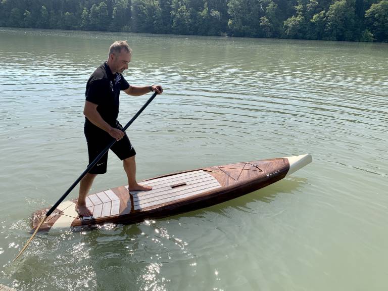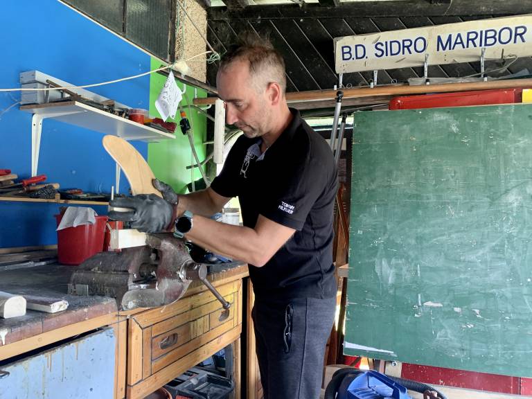 »Manjša gostota lesa pomeni tudi manjšo težo kot pri plastiki in pa določeno večjo elastičnost, se pravi les tudi sam po sebi že prenaša elastičnost,« pravi izdelovalec lesenih supov.