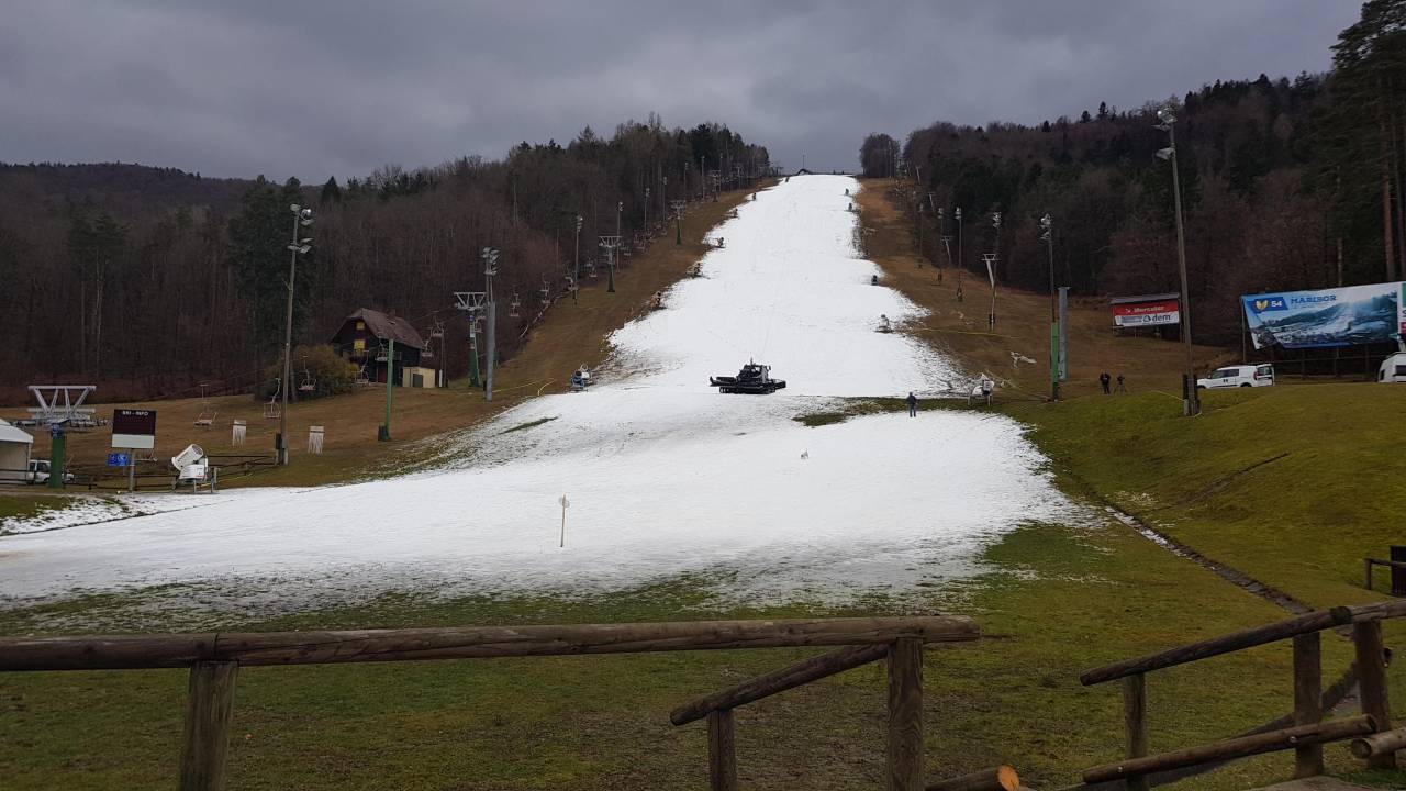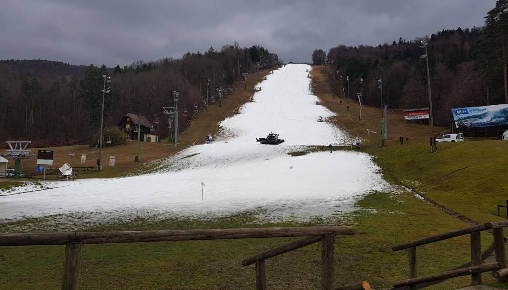 »Situacija je takšna, kot jo vidite. Razgrnili bomo sneg in čakamo na jutrišnjo kontrolo. Tekma bo, bomo pa videli kje. Možnosti za tekmo v Mariboru vsekakor so, mi se bomo potrudili. Čakamo na ugodno temperaturo, da bi še malo odebelili snežno podlago. Ne mečemo puške v koruzo,« pravi Andrej Rečnik, ki je zadolžen za pripravo prog na Zlati lisici.