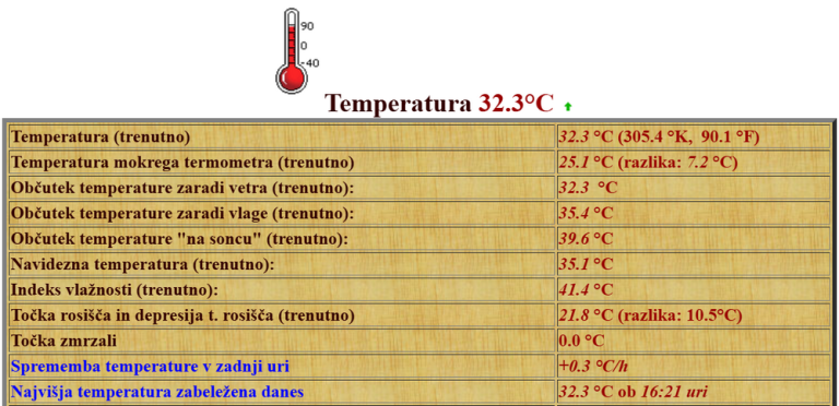 Temperatura v torek, 13. avgusta, je bila tudi rekordna temperatura v letu 2024 po meritvah te amaterske vremenske postaje.