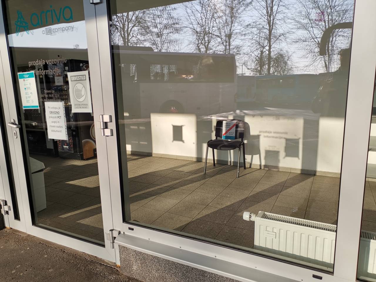 »Edini stol, ki je trenutno v čakalnici, je namenjen sodelavcu, ki preverja PCT pogoj potnikov, ki želijo vstopiti v prostor zaradi nakupa vozovnice ali pridobitve informacij,« pojasnijo na podjetju Arriva Slovenija.