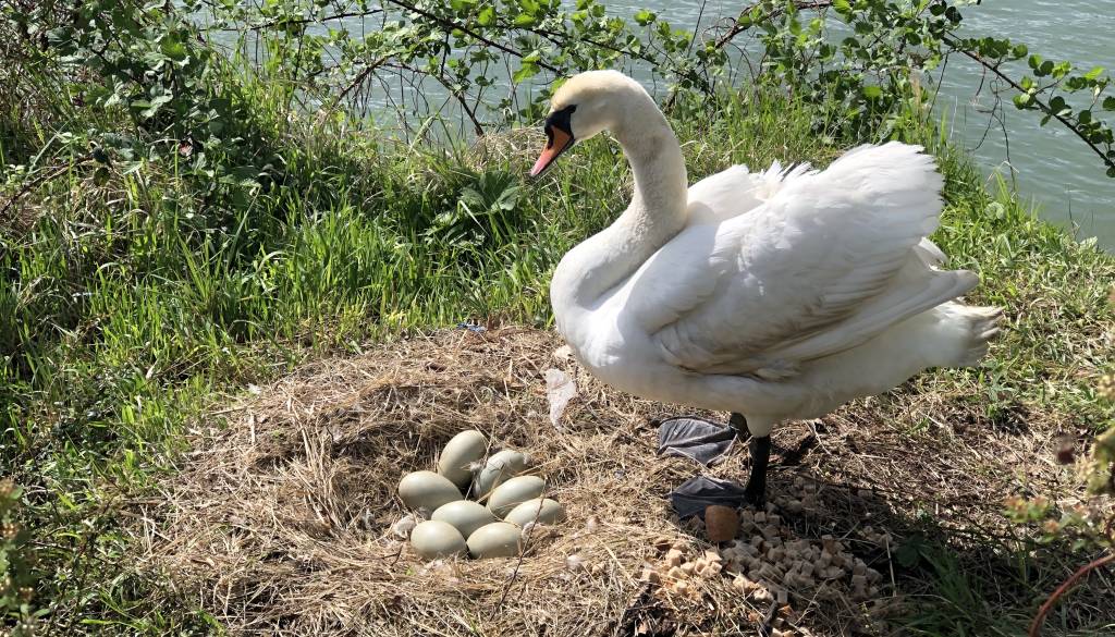 Prejšnji teden smo že poročali o zaljubljenih labodjih parih, ki so si nedaleč od človeških domovanj ustvarili gnezda. Po nekaterih ocenah živi v mestu Maribor največ labodov v Sloveniji. Labodi si poiščejo partnerja za vse življenje, čeprav se občasno pojavi tudi »ločitev«, ki je običajno posledica neuspešnega gnezdenja. Število jajc v leglu je med tri in osem.