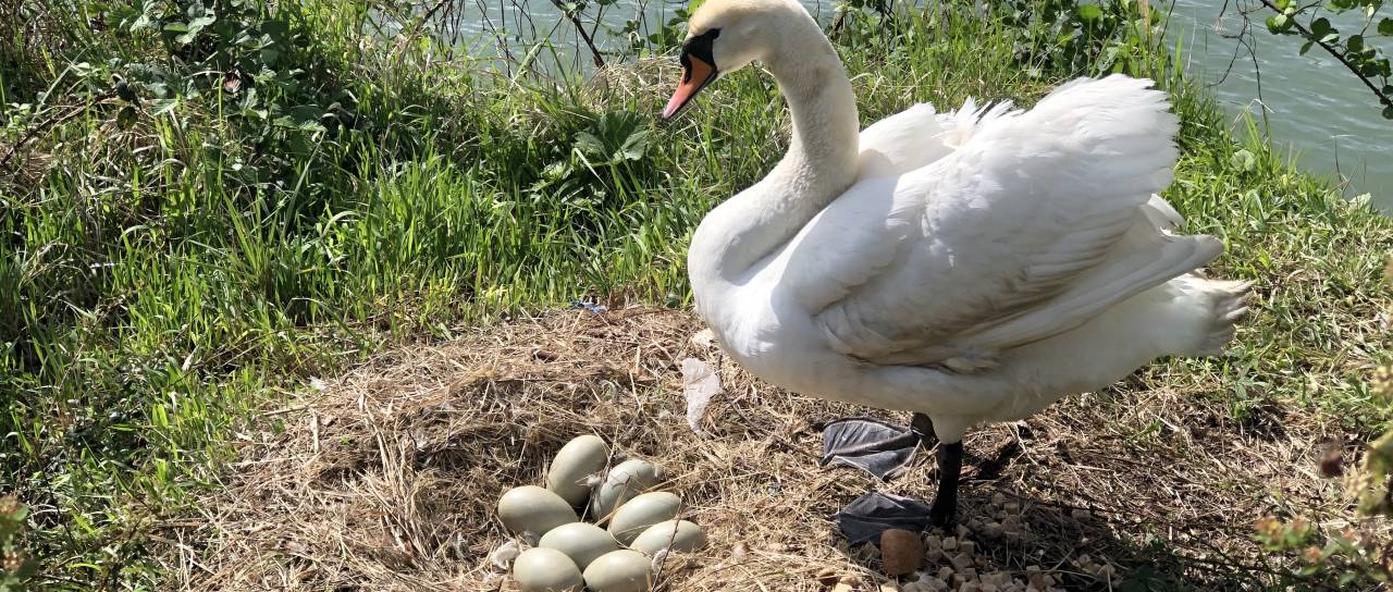 Labodka se je odločila odpočiti od gnezdenja in tako smo opazili kar osem jajc.
