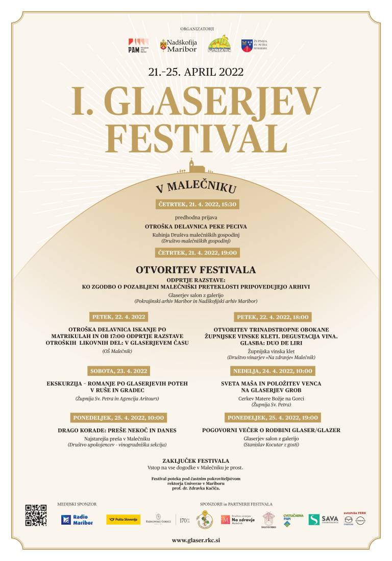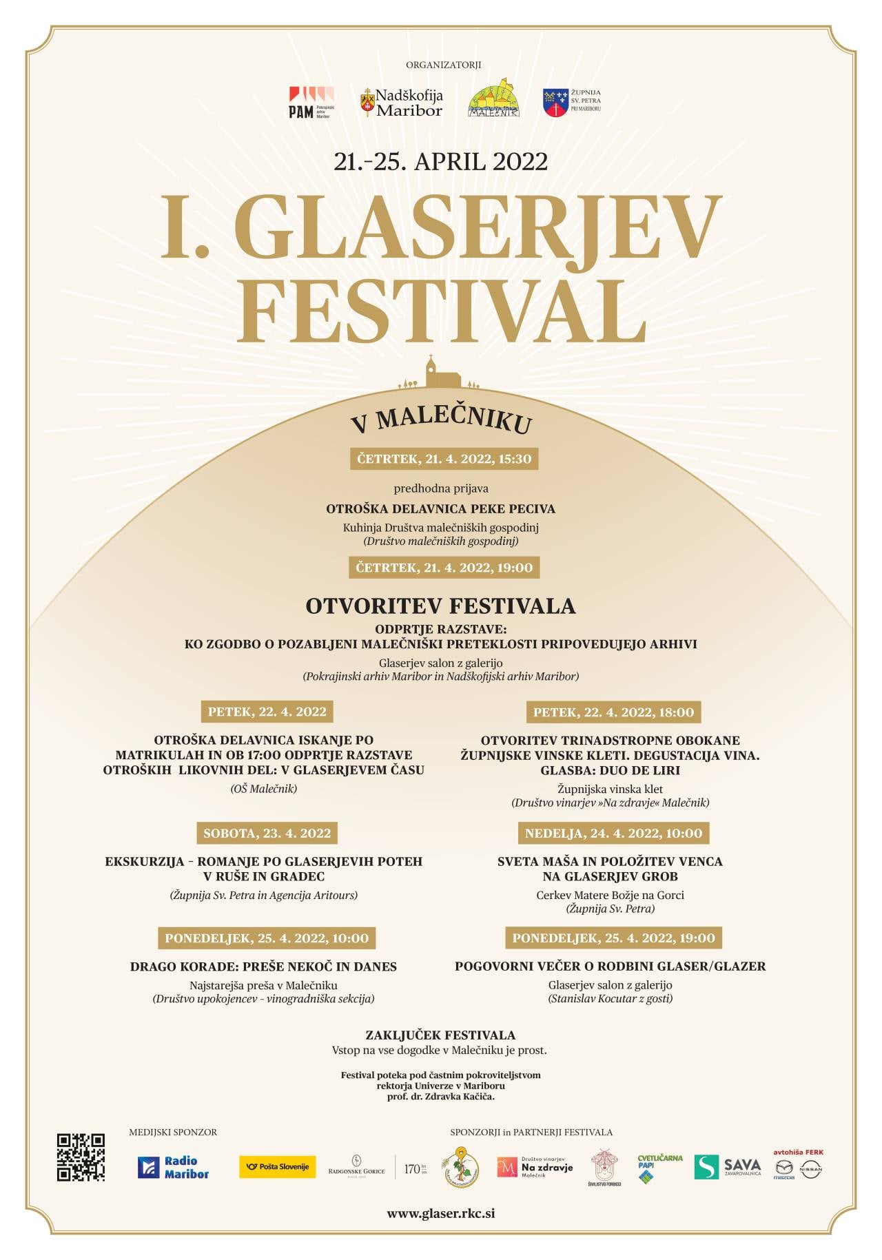 Župnija svetega Petra pri Mariboru Malečnik, Pokrajinski arhiv Maribor, Nadškofija Maribor in Osnovna šola Malečnik vabijo na 1. Glaserjev festival v Malečniku, ki bo med 21. in 25. aprilom.