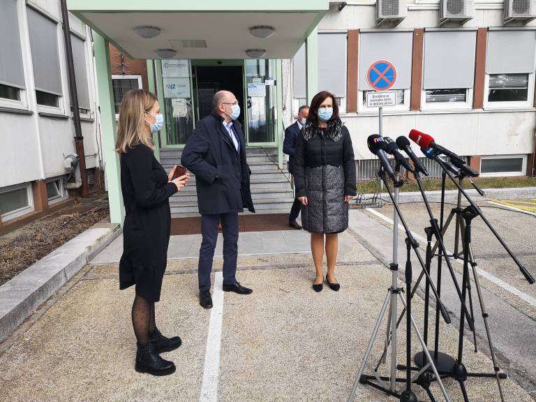 Nacionalni koordinator za logistični del akcije množičnega cepljenja zoper covid-19 Jelko Kacin se je uvodoma najprej zahvalil delavcem Nacionalnega laboratorija za zdravje, okolje in hrano za njihova prizadevanja in opravljeno delo.