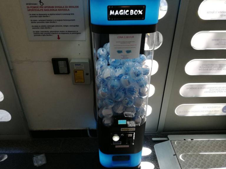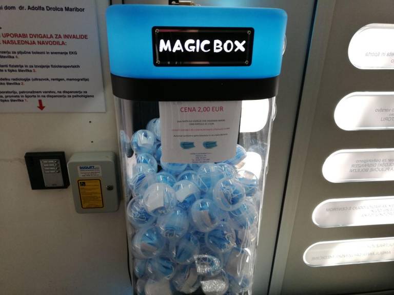 Prav te lahko obiskovalci zdravstvenega doma kupijo kar na 'magičnem' avtomatu poimenovanem Magic box oziroma magična škatla. In kako do same maske?