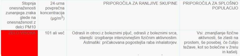 Zaradi visoke onesnaženosti zraka v skladu z Odloki za kakovost zraka Arso občanom in pravnim osebam priporoča, da: