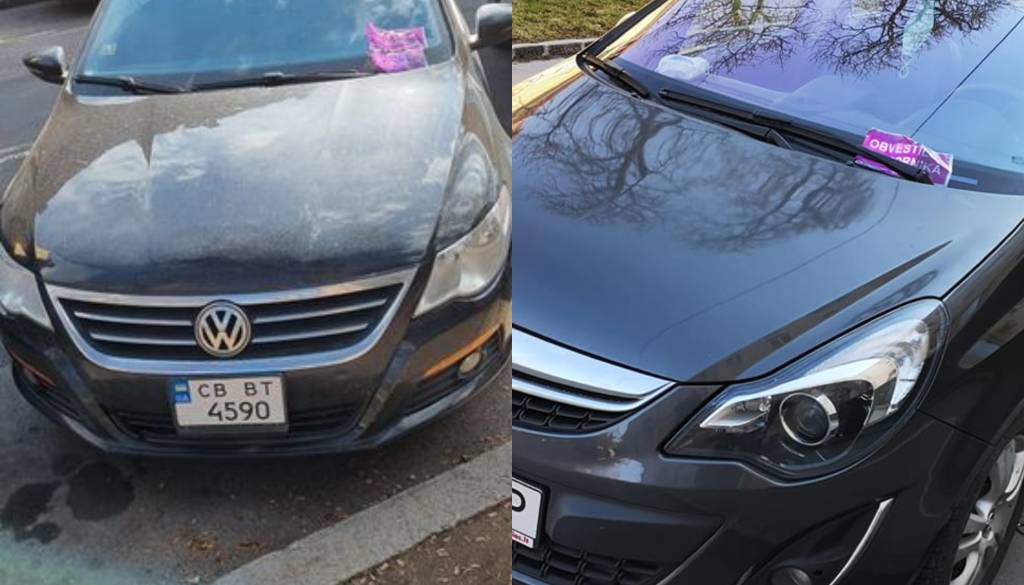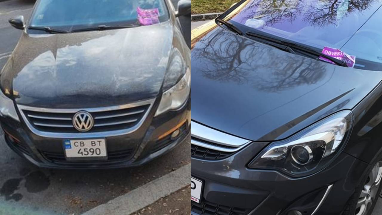 Iz fotografije objavljene skupaj z zapisom je jasno razvidno, da ima osebno vozilo z ukrajinskimi registrskimi tablicami nameščeno obvestilo nadzornika parkirišča.