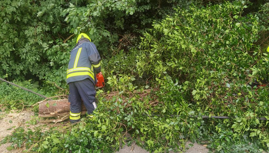 Gasilci imajo več dela zaradi podrtih dreves in odkritih streh. Zvečer in ponoči so v severni in severovzhodni Sloveniji možne nove nevihte.