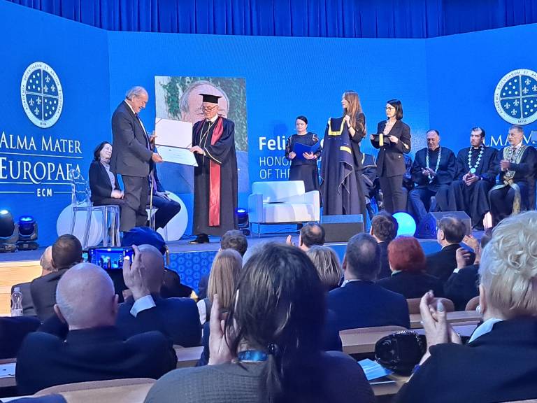 Častni predsednik Evropske akademije znanosti in umetnosti profesor Felix Unger je prejel naziv častni doktor za izjemne dosežke na področju medicinske znanosti in humanizma ter za akademsko in organizacijsko podoro pri razvoju Alma Mater Europaea – ECM.