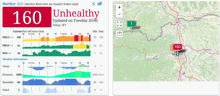 Zrak je v času kurilne sezone v Sloveniji onesnažen, še posebej so problematični delci. Z visoko koncentracijo delcev smo se danes soočali tudi v Mariboru.