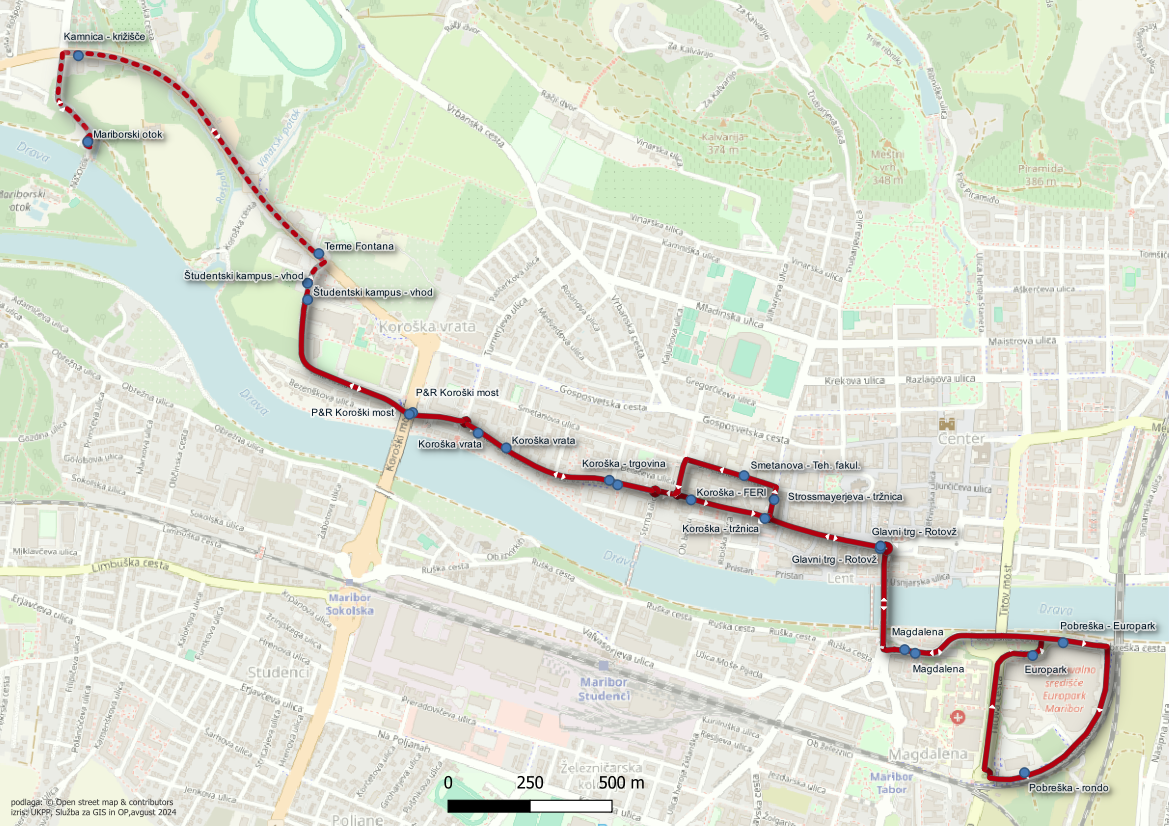 Avtobus bo na postajališča Terme Fontana, Kamnica križišče in Mariborski otok vozil, dokler obratuje kopališče Mariborski otok.