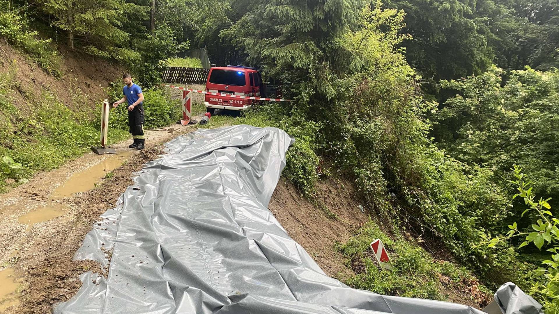 Ob 7.50 je v Gaju nad Mariborom zemeljski plaz odnesel del cestišča. Gasilci Gasilske brigade Maribor so s folijo so pokrili plaz, plazovito območje zavarovali in ga začasno sanirali.