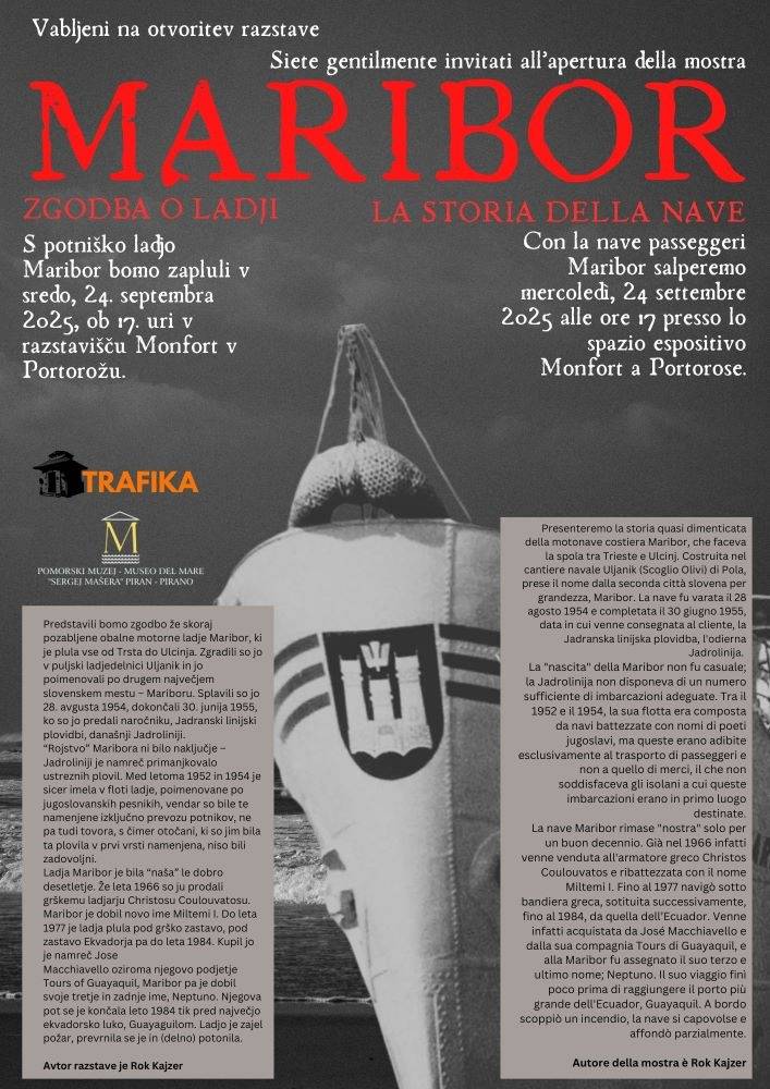 Ladja Maribor, katere zgodba se začne z gradnjo v puljski ladjedelnici Uljanik za Jadransko linijsko plovidbo, kasnejšo Jadrolinijo, je potnike in tovor vzdolž jadranske obale prevažala zgolj 11 let, med letoma 1955 in 1966. Sledila je prodaja naprej v Grčijo in preimenovanje v Miltemi I. in nato še v Ekvador, kjer je kot Neptuno doživela dokaj neslaven konec.
