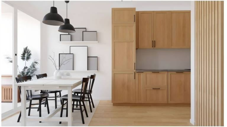Ob steni kopalnice bo postavljena enojna postelja, ob zunanji steni pa sedežna garnitura z regalom. Na nasprotni strani je kuhinjski niz, ki se zaključuje z jedilno mizo, za katero bo prostora za več oseb. Stanovanje velikosti dobrih 40 kvadratnih metrov vključuje ložo, pritlično pa tudi atrij.