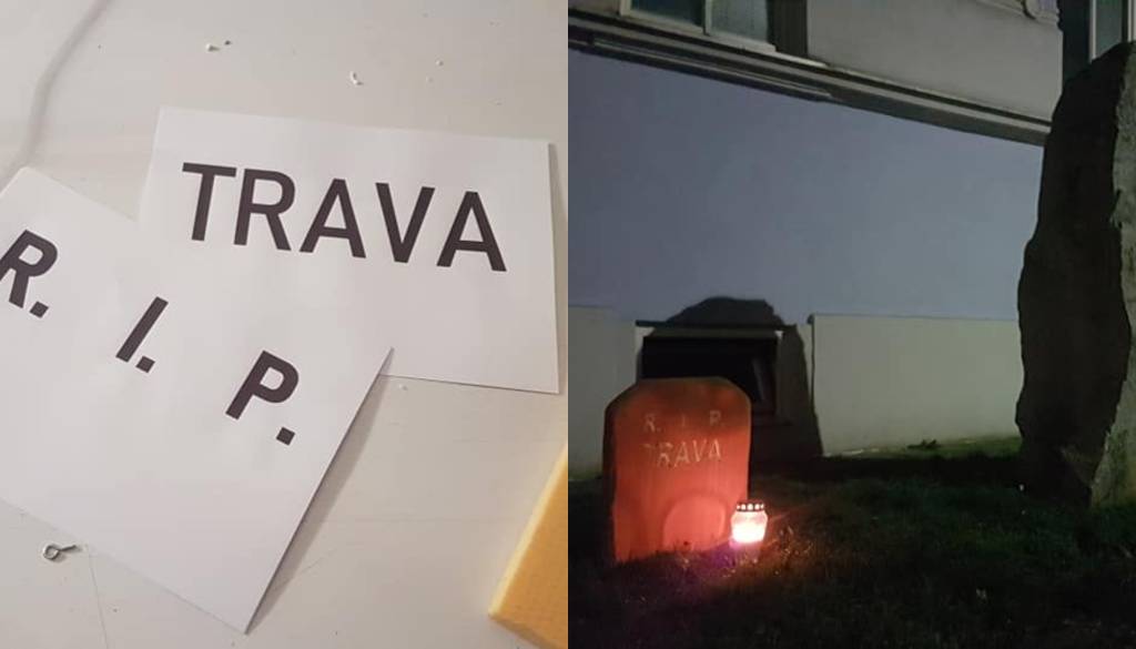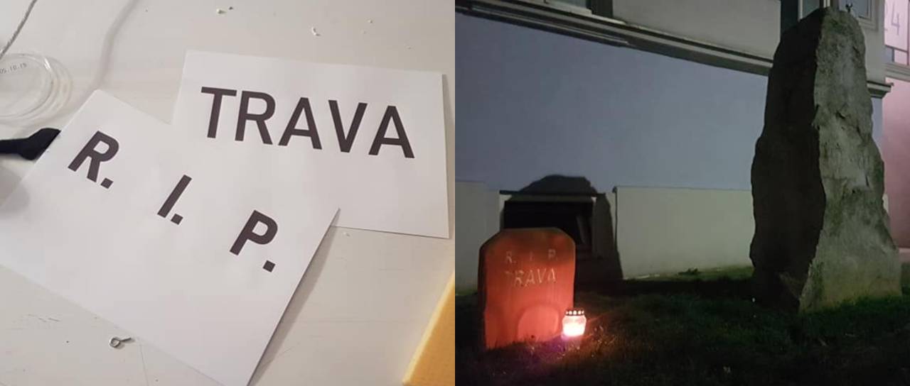 »Na Maistrovi imamo blok, kjer se je razpasla grda navada vožnje po zelenici. Ker je bil Maister tudi pesnik, umetnik besede, sem se stanovalec odločil, da prej kot po puški posežem po tovrsnem orožju. Vabljeni, da z nami potočite solzo travi v spomin,« je zapisal.