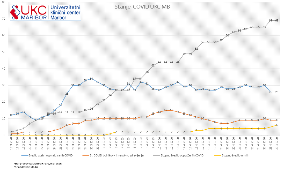 Iz Univerzitetnega kliničnega centra Maribor so sporočili, da je število umrlih, okuženih s koronavirusom, naraslo na šest.