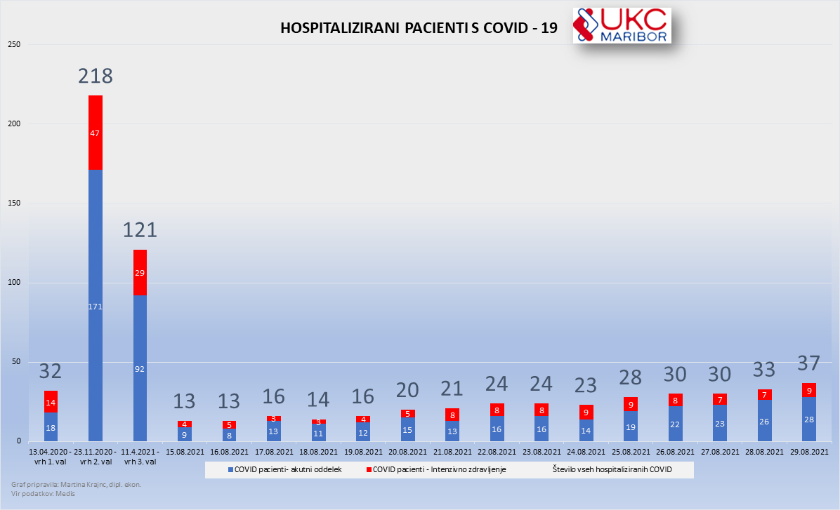Kot pojasnjuje Vogrin, se v trenutku v mariborski bolnišnici zdravi že 37 pacientov, od tega devet na intenzivni terapiji.