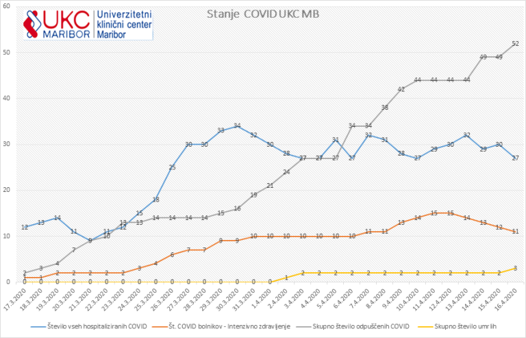 Iz Univerzitetnega kliničnega centra Maribor sporočajo, da je zaradi covid-19 trenutno hospitaliziranih 27 bolnikov, od tega jih je 11 na intenzivnem zdravljenju.