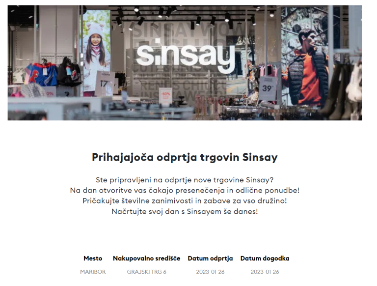 Na lokaciji nekdanje trgovine C&A bo že januarja vrata odprla trgovina Sinsay.