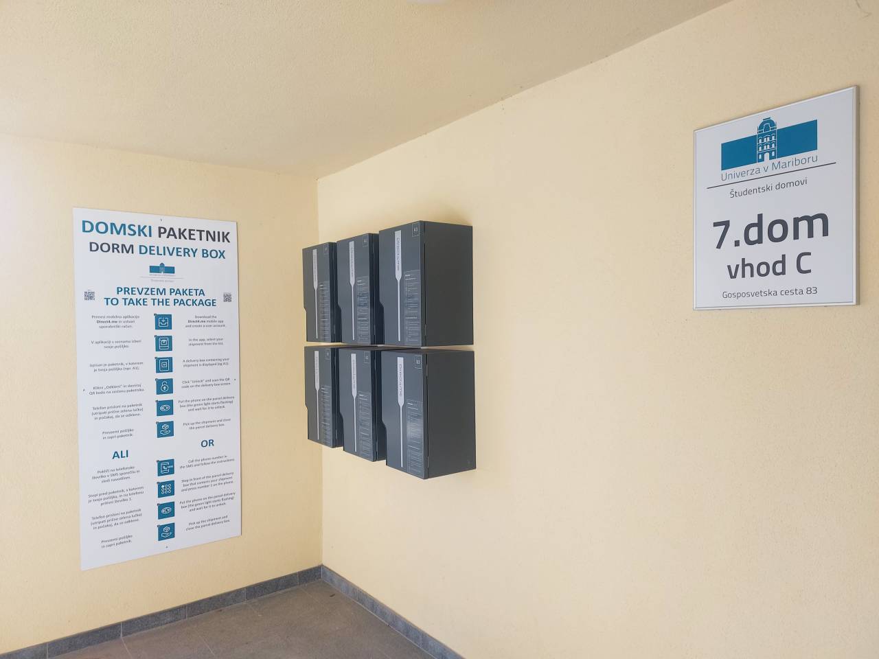 V sodelovanju s podjetjem Direct4.me so zato v dveh od petih študentskih naselij Univerze v Mariboru namestili pametne paketnike. Šest jih je nameščenih pred vhodom v Dom 7 na Gosposvetski cesti, še šest jih je pred vhodom v Dom 1 na Tyrševi ulici.