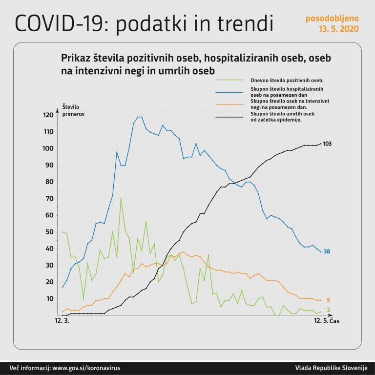 Z Vlade Republike Slovenije so sporočili sveže podatke o trendu obolelosti s koronavirusom v Sloveniji.