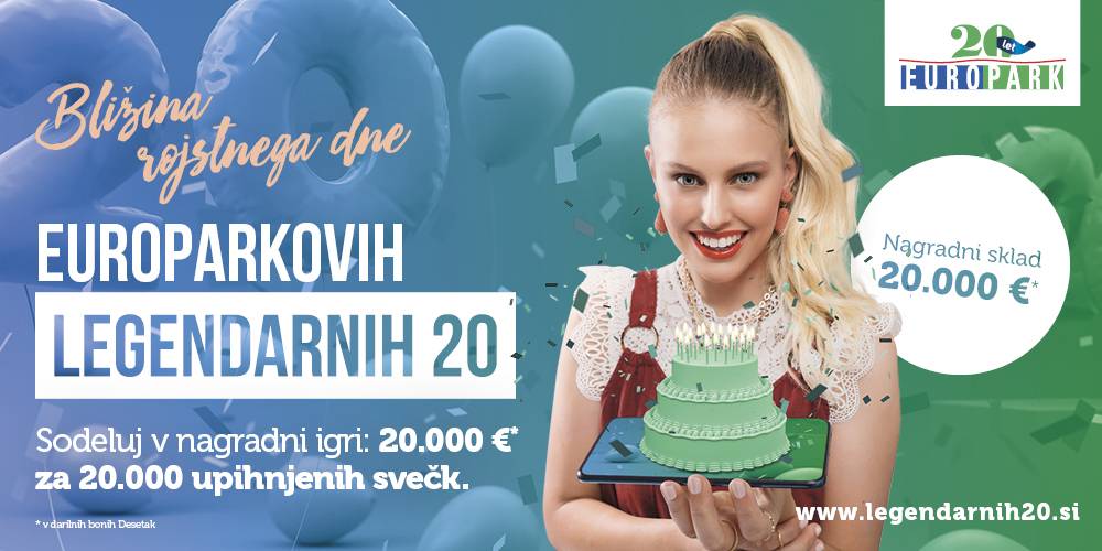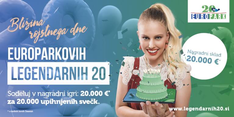 Obenem v mariborskem nakupovalnem središču vabijo, da v spletni aplikaciji na www.legendarnih20.si »upihnete« rojstnodnevno svečko. Gorelo bo kar 20.000 svečk, z vsako upihnjeno svečko pa se poviša nagradni sklad nagradne igre za en evro.