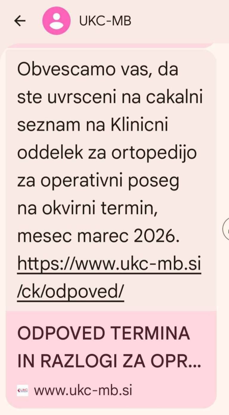 Če pacient prejme SMS obvestilo, vendar na navedeno obravnavo ni naročen, lahko sporočilo brez skrbi prezre.