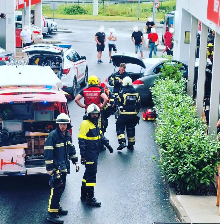 In sicer, kot je razvidno iz fotografij, je osebno vozilo znamke BMW sive barve zaradi neprilagojene hitrosti zapeljalo naravnost v gostinski lokal na bencinski črpalki in popolnoma razdejalo teraso.