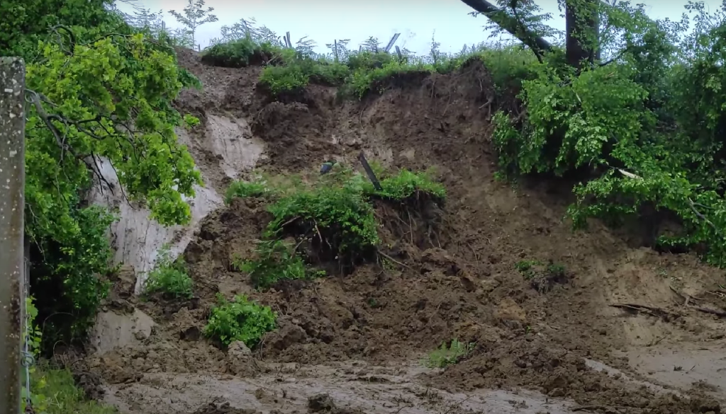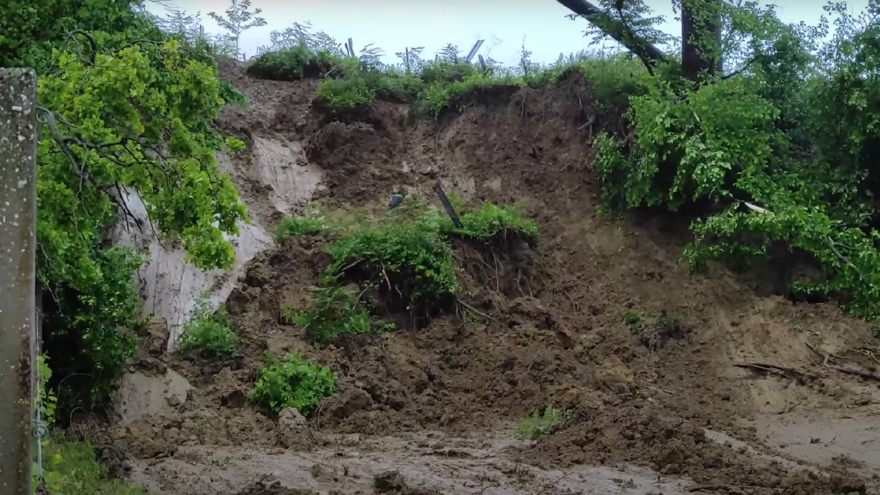 Član ekipe Metroinfo Slovenija Matej Štegar je včeraj v Orešju pri Ptuju ujel trenutek, ko je v vinograd zdrsnil večji zemeljski plaz.