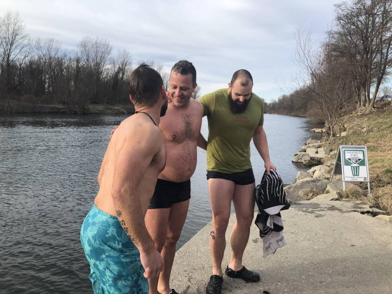Skok v ledeno mrzlo Dravo 1. januarja? Zakaj pa ne! Takole so se ga lotili v Vurberku.