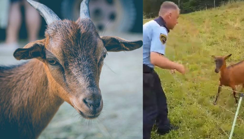Srčni policist je med delom opazil kozo, ki se je zagozdila v ograjo in ji takoj priskočil na pomoč.
