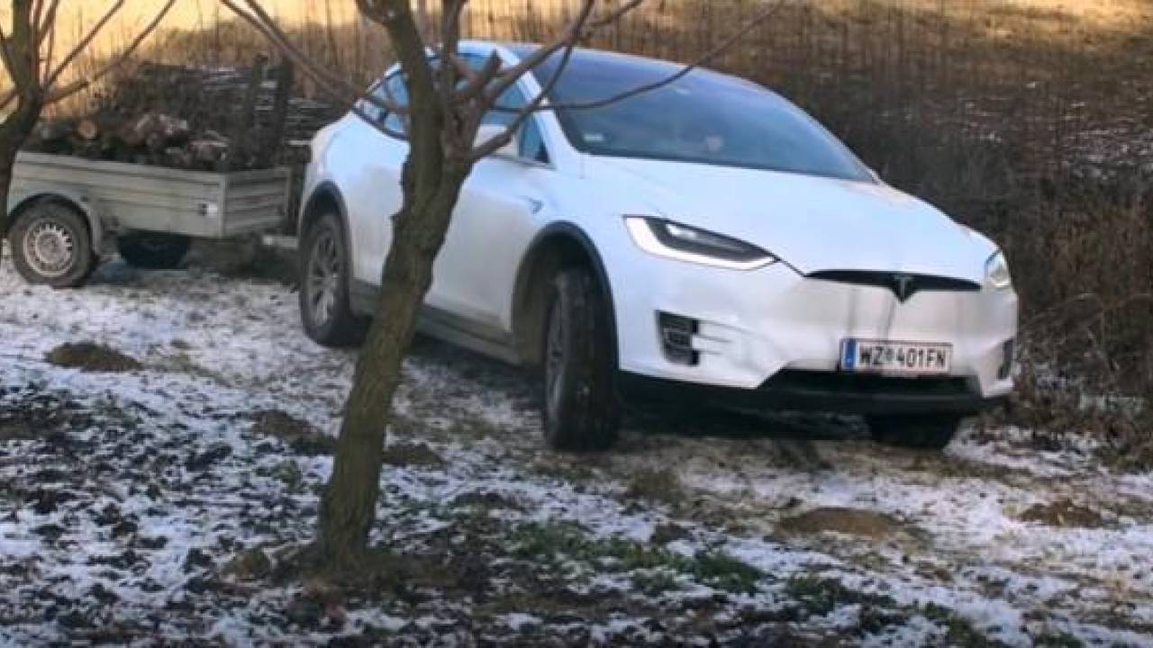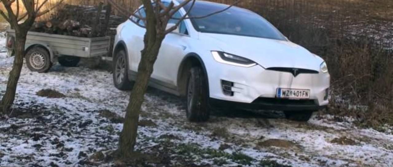 Na avstrijskem Štajerskem je neznanec svoja drva v zmajani prikolici prevažal kar z električnim mogotcem Tesla Model X.